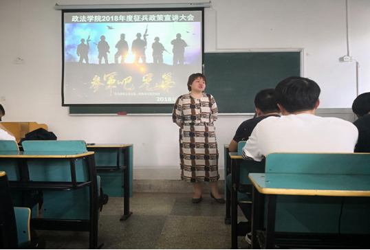 19日下午,WilliamHill体育2018年征兵政策宣讲大会,在博学楼120举行,公司党总支副书记王丽老师,辅导员库恒老师,以及公司全体男生参加会议。