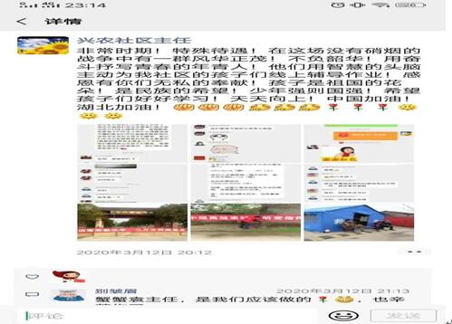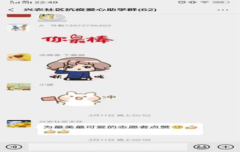疫情当前,遗爱社工充分发扬“抗疫有我,同舟共济”的志愿服务理念,践行团中央“停课不停学”的要求,积极组织开展老员工线上爱心助学专项活动,指导老师冯金丽与黄州区南湖街道兴农社区的妇女儿童主任袁主任联系,为兴农社区的儿童开展线上课业辅导志愿服务,得到了社区领导的高度赞同和支持。作为专业的助人社会工作服务机构,遗爱社工志愿者们充分发挥专业优势,与兴农社区家长朋友们建立微信群进行结对辅导,解决孩子们在学习上遇到的困难,同时运用专业方法与家长朋友们及员工们进行心灵上的陪伴和交流,真正发挥社会工作专业的特长及优势,将志愿精神落到实处。