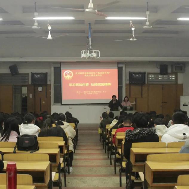 邓博士报告的主题是“学习宪法内容 弘扬宪法精神”,报告分别从为什么要设立国家宪法日?宪法是什么?2018年宪法修正案的亮点和意义以及如何大力弘扬宪法精神四个方面进行了生动讲解,并与大家一起分享了习近平总书记的宪法宣誓视频。邓博士的报告,综合运用视频展示、图解演示、案例分析等多种方法,让在场的师生们对我国现行宪法有了更深刻的理解,进一步坚定了大家学好法律、用好法律、维护法律的信心,深化了宪法在师生们心中的神圣和权威地位。