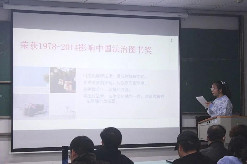 首先,由两位主持人向同学们介绍本次活动背景,活动主题及活动目的。紧接着,以班级为单位,按照法学2101班、2102班、2001班、2002班的顺序进行读书分享。各班代表依次上场,通过制作精美的PPT以及精彩的发言,向大家分享自己的读书心得。