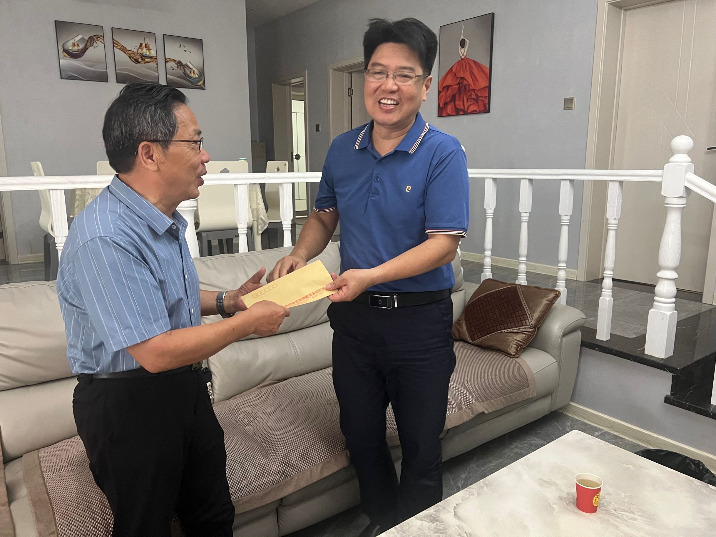 在陈铁训老师、熊佑男老师家中,钱舟扬书记、李红卫经理详细询问了两位老师的身体及生活状况,介绍了公司及集团发展情况,并希望老党员一如既往关心公司发展,为公司高质量发展多提宝贵意见。