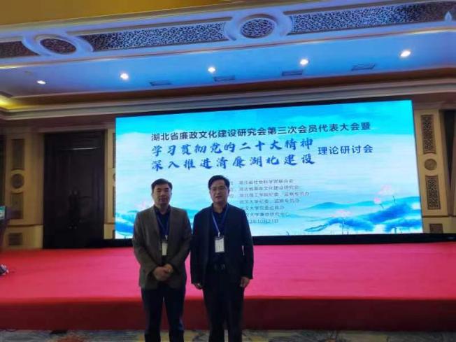 10月20日至21日,湖北省廉政文化建设研究会第三次会员代表大会暨“学习贯彻党的二十大精神,深入推进清廉湖北建设”理论研讨会在湖北理工公司举行。这次研讨会有来自全省的150余名专家学者参加研讨交流。公司作为省廉政文化建设研究会理事单位,黄冈市党内法规研究中心主任居继清教授、中心办公室主任刘宏明副教授应邀出席本次会员代表大会和理论研讨会。本次会员代表大会举行了换届大会,选举产生了湖北省廉政文化建设研究会新一届会长、副会长、秘书长、常务理事、理事,中心主任居继清教授当选为研究会理事。在研讨会上与会代表听取了武汉大学、湖北理工公司、华中科技大学、华中农业大学、湖北大学、三峡电能有限公司、武汉工程大学等单位的专家和领导的主旨报告和交流发言。